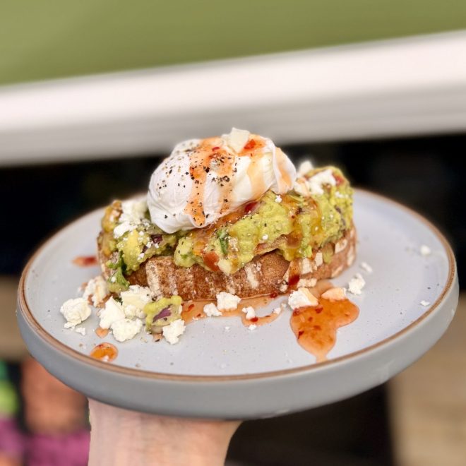 Smashed Avocado on Homemade Sourdough with Poached Egg & Sweet Chilli (v)